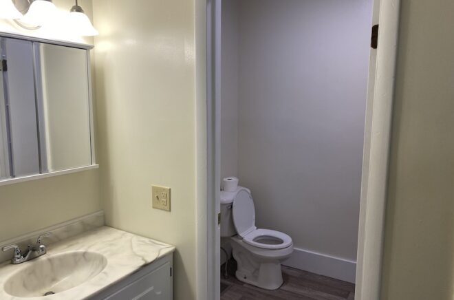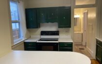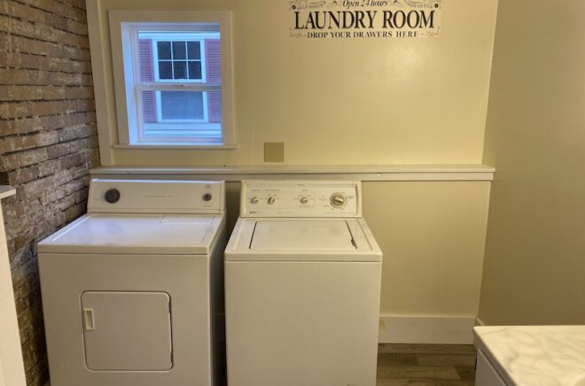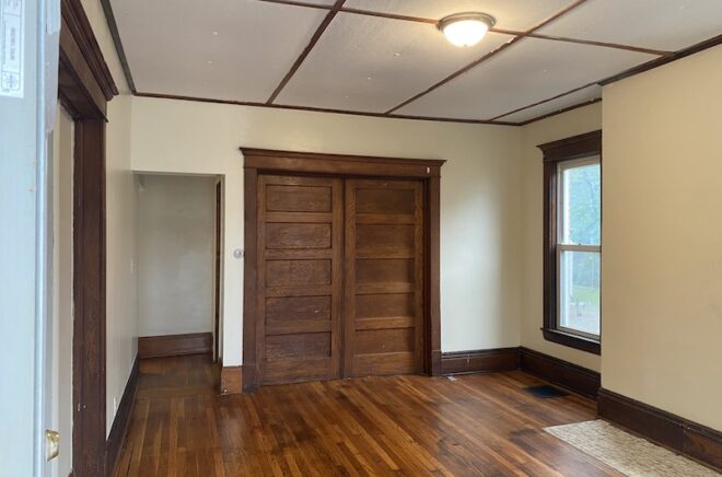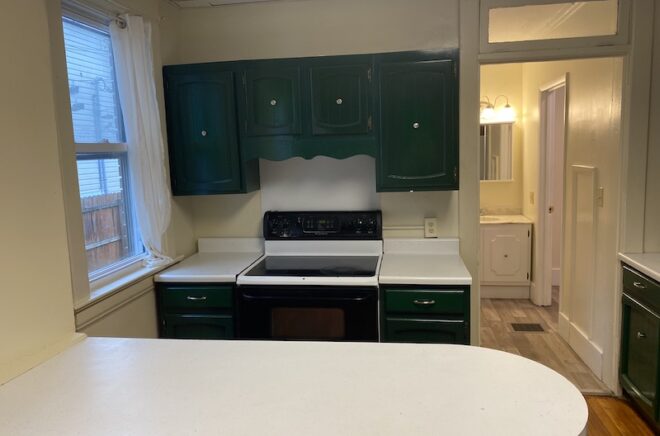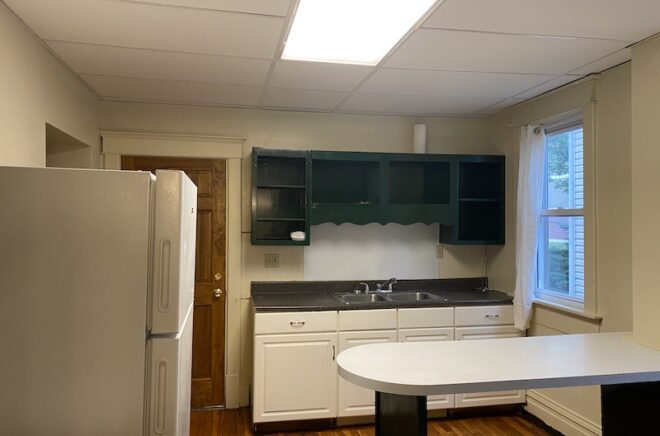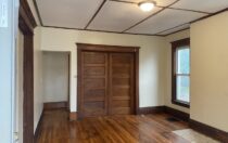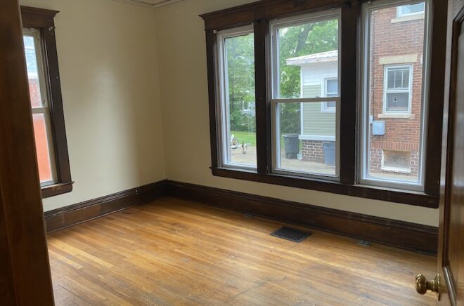 This large 100 year-old house is subdivided into four apartments. Apartment 1 has the original hardwood floors and trim. It is a two-bedroom, one-bathroom unit with washer and dryer, central air, and with access to the front porch and side entrance. Parking is available in a private lot. Tenants pay all utilities.