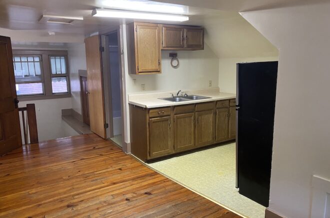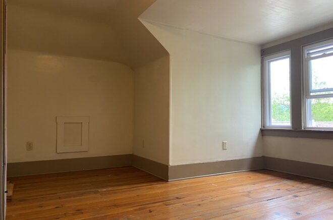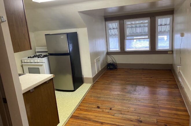 This is a one-bedroom efficiency apartment on the top floor of this charming 100 year-old house at 82 Mill Street. The apartment has a large storage closet, open kitchen/living/dining space, large bedroom, full bathroom and hardwood floors. The apartment also has access to parking in a private lot and window a/c units.