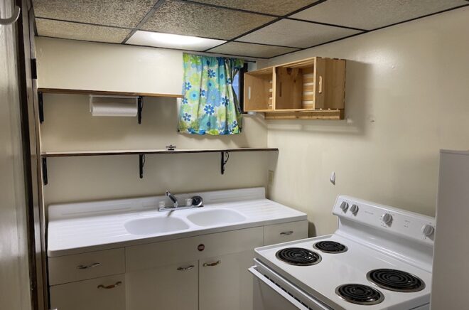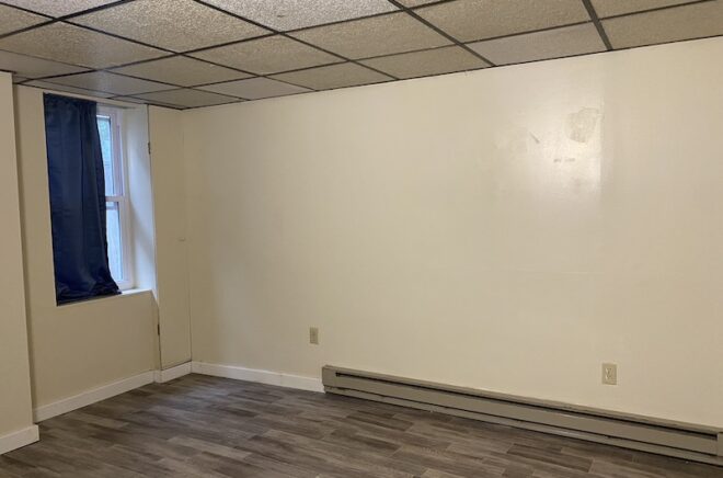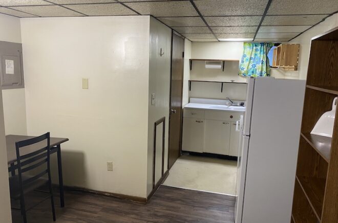 This apartment is located in the basement level of a charming 100 year-old house.  This two-bedroom, one bathroom efficiency has an open kitchen/dining/living room, storage closet, central air conditioning, laundry room with washer and dryer, and parking in a private lot.